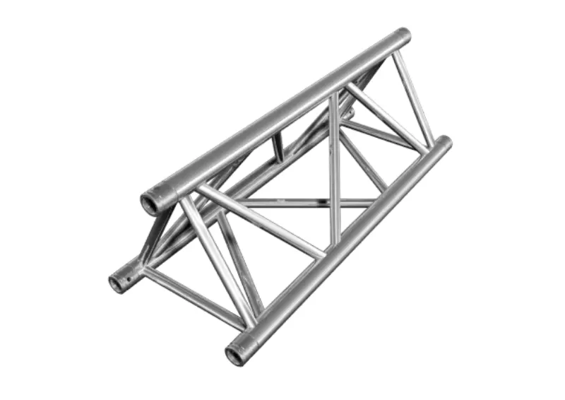 F43 三角直桁架采用高强度 EN AW-6082 T6 铝合金制成,主桁架直径 50 毫米,主桁架支架直径 25 毫米,外部尺寸 400 毫米。其设计跨度可达 18 米,具有卓越的承载能力和稳定性。它非常适合舞台、展览和活动搭建,无需工具即可快速锁定,并可无缝集成模块化结构,提供灵活可靠的结构解决方案。