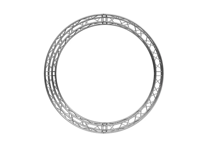 圆形桁架采用高强度 EN AW-6082 T6 铝合金制成,主桁架直径 50 毫米,斜撑直径 20 毫米,壁厚 2 毫米。它采用 90° 连接设计,外部尺寸 290 毫米,最大跨度可达 18 米。它非常适合舞台、展览和活动搭建,具有快速组装、模块化灵活性和可靠性能。