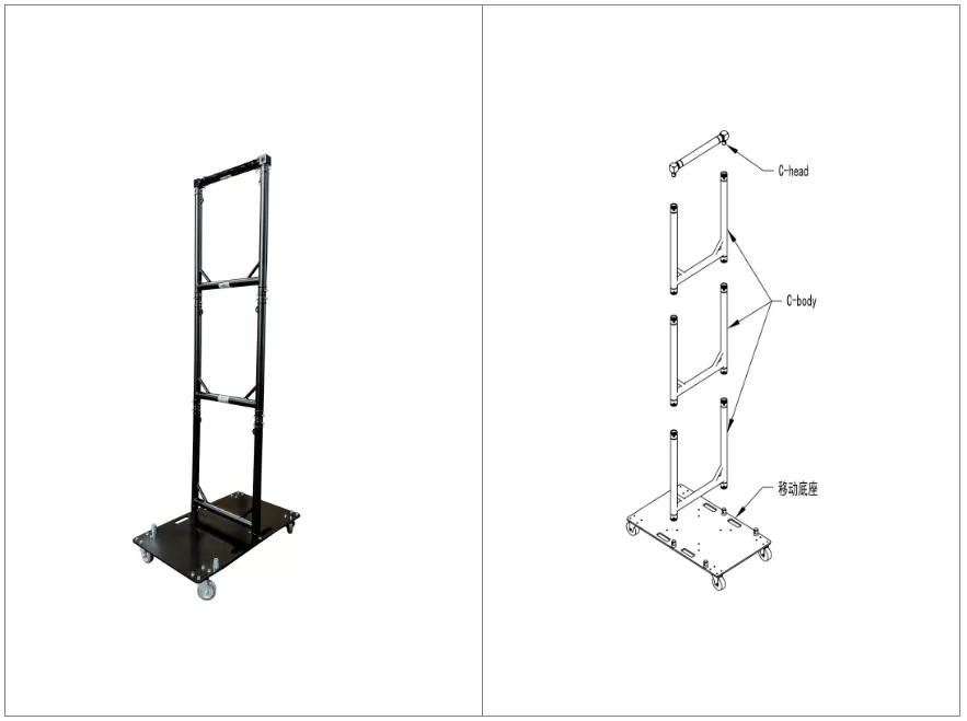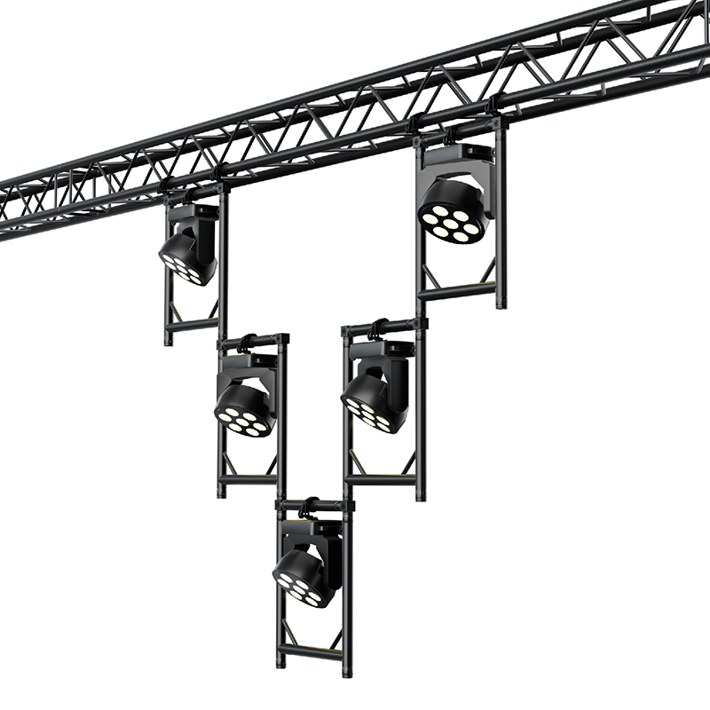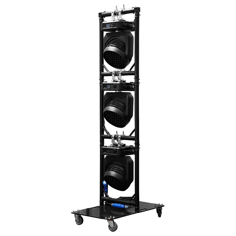 这是传统固定舞台灯柱的替代解决方案,易于移动,提高了安全性和稳定性。该设计最多可容纳四层灯具,也可组合成灯阵列使用。