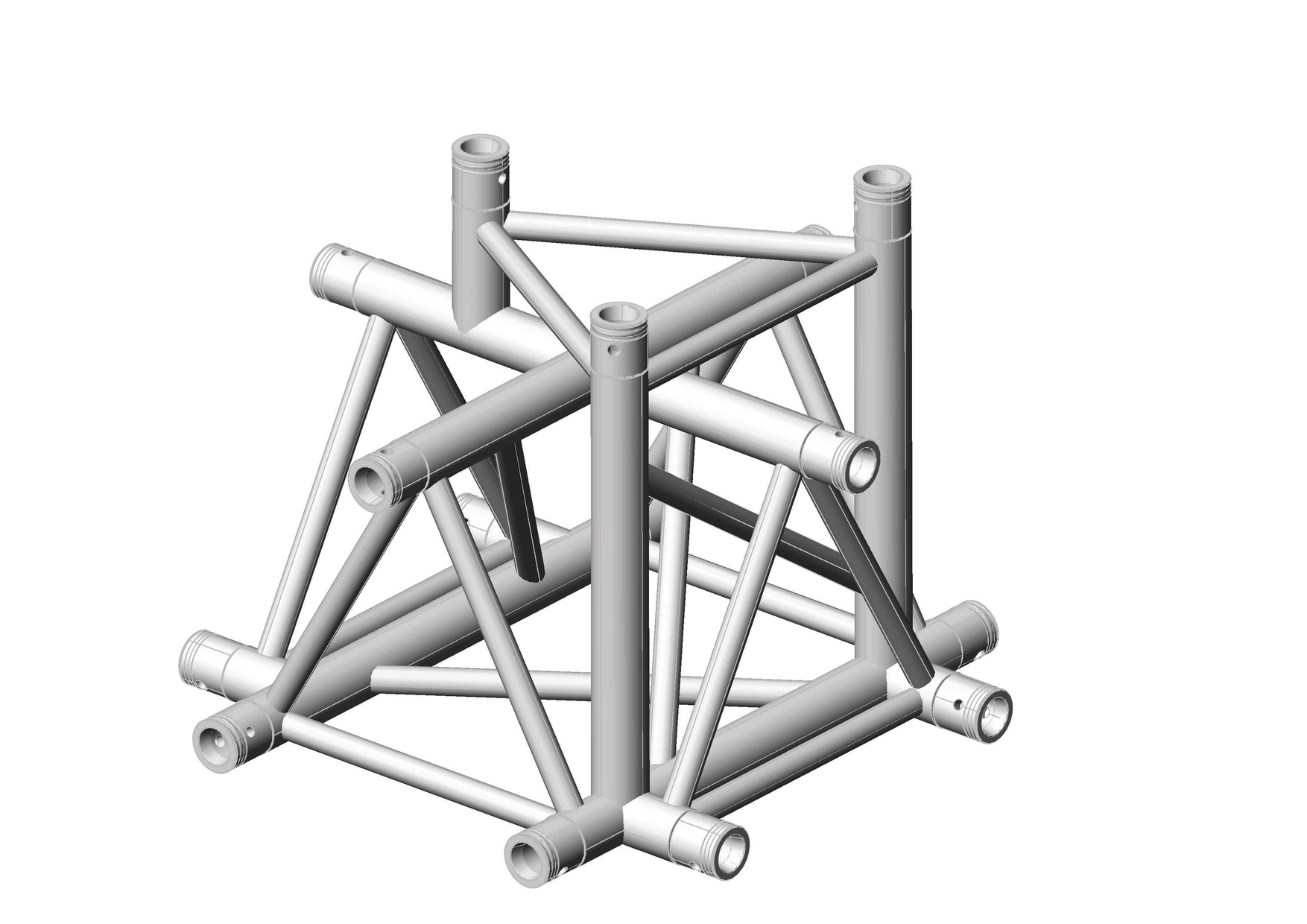 F43三角桁架拐角采用高品质EN AW-6082 T6铝材制造,具有50 mm主管和25 mm支撑杆。专为精确的三点连接而设计,保证坚固的稳定性以及与F43直桁架的无缝集成。非常适合舞台、展览和活动结构,它提供快速、无需工具的组装、优异的负载承载能力和灵活的模块化设计,适用于专业应用。