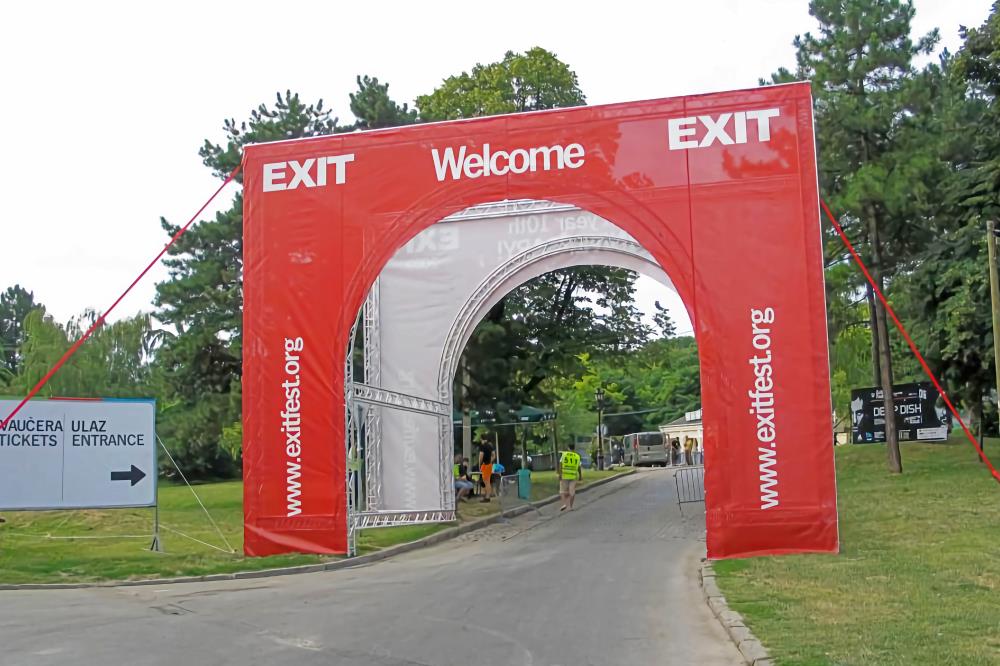 双弧形框架搭建牌坊展示架,官方宣传海报展示其魅力。
