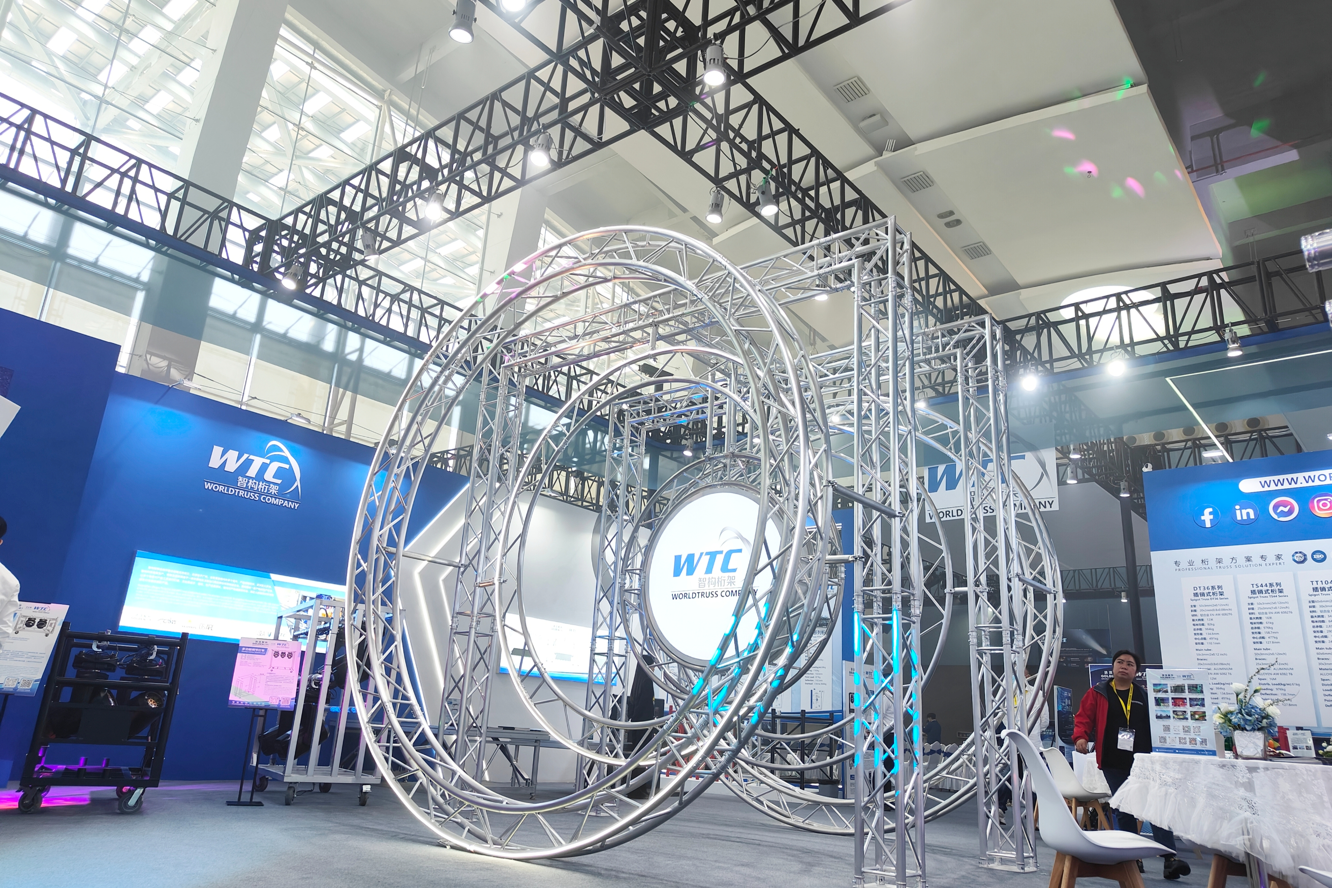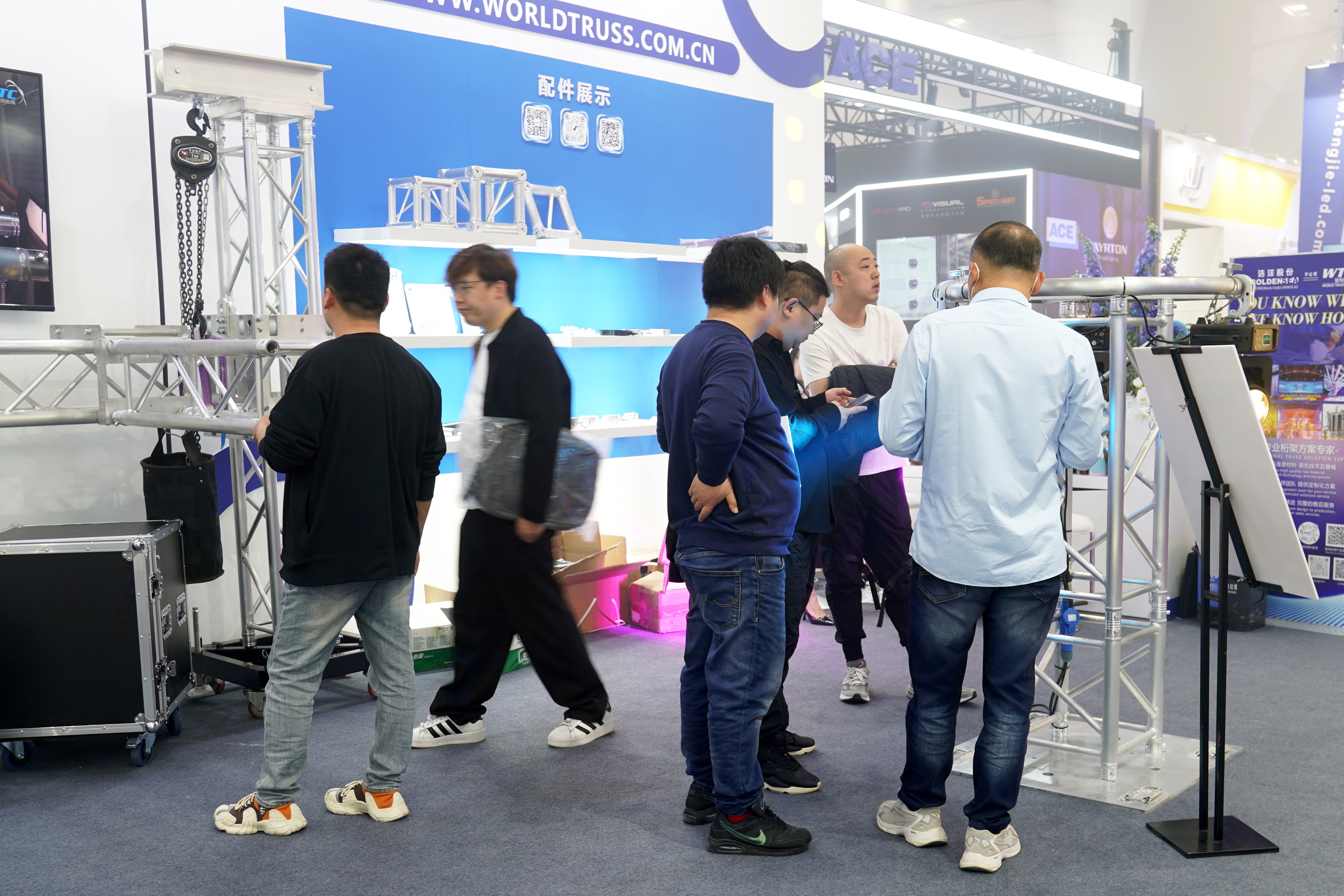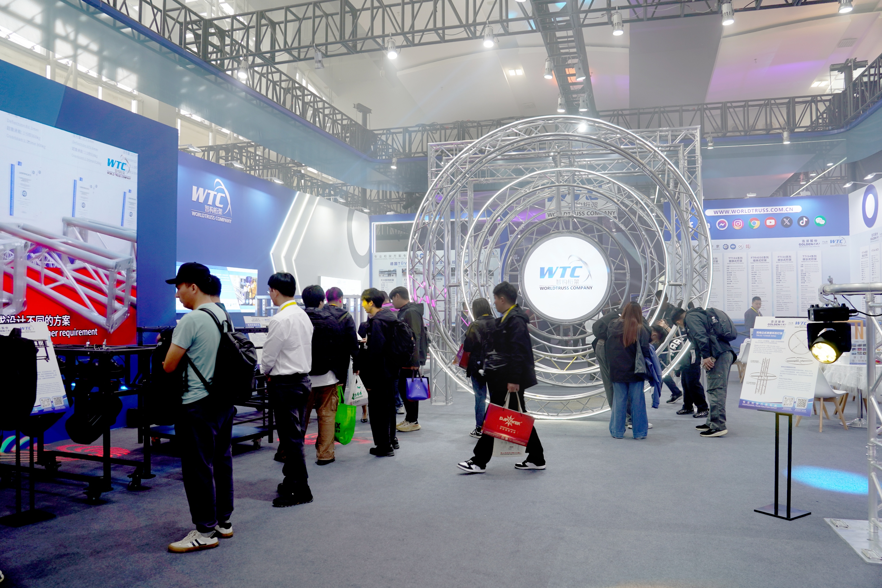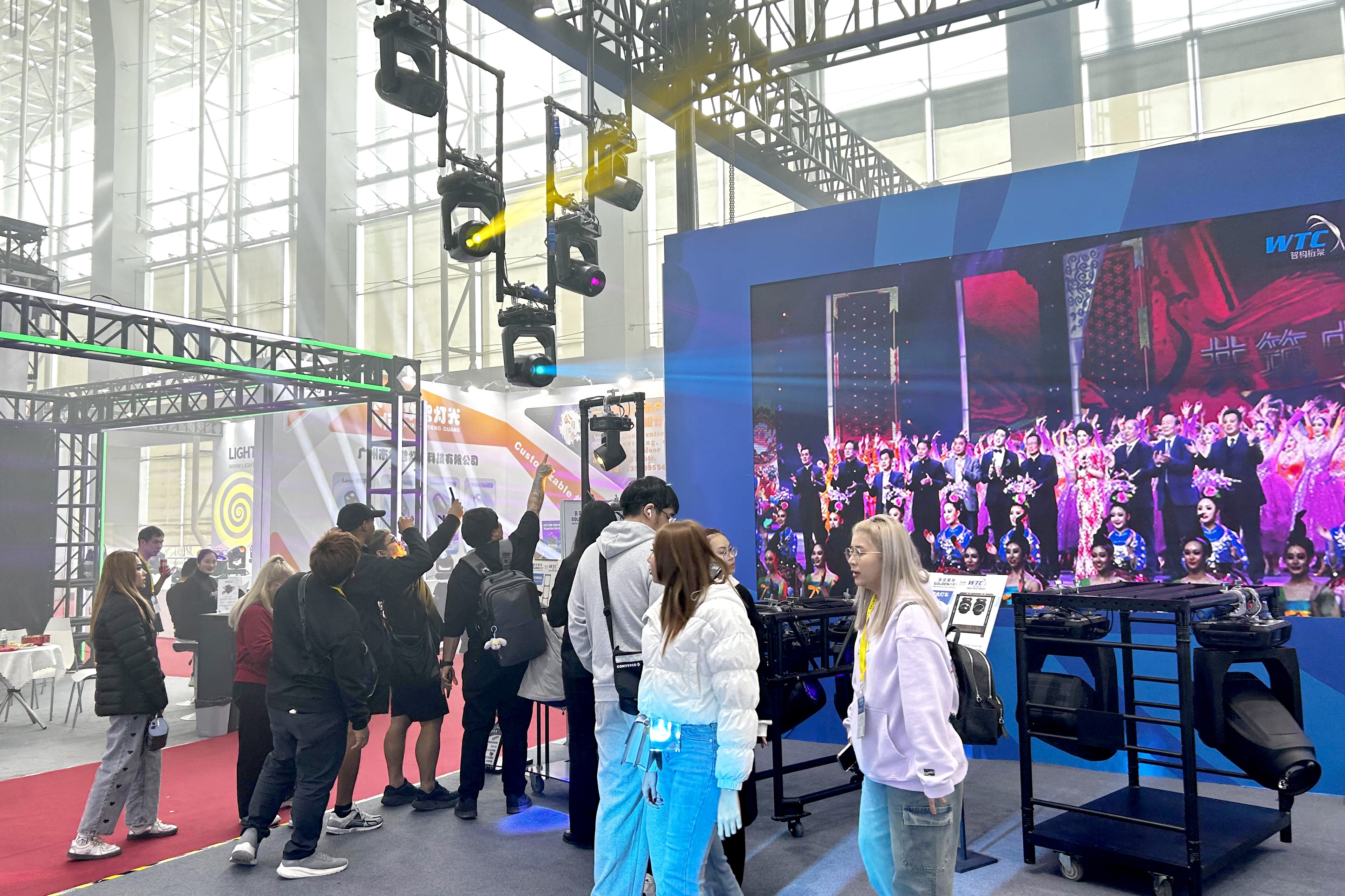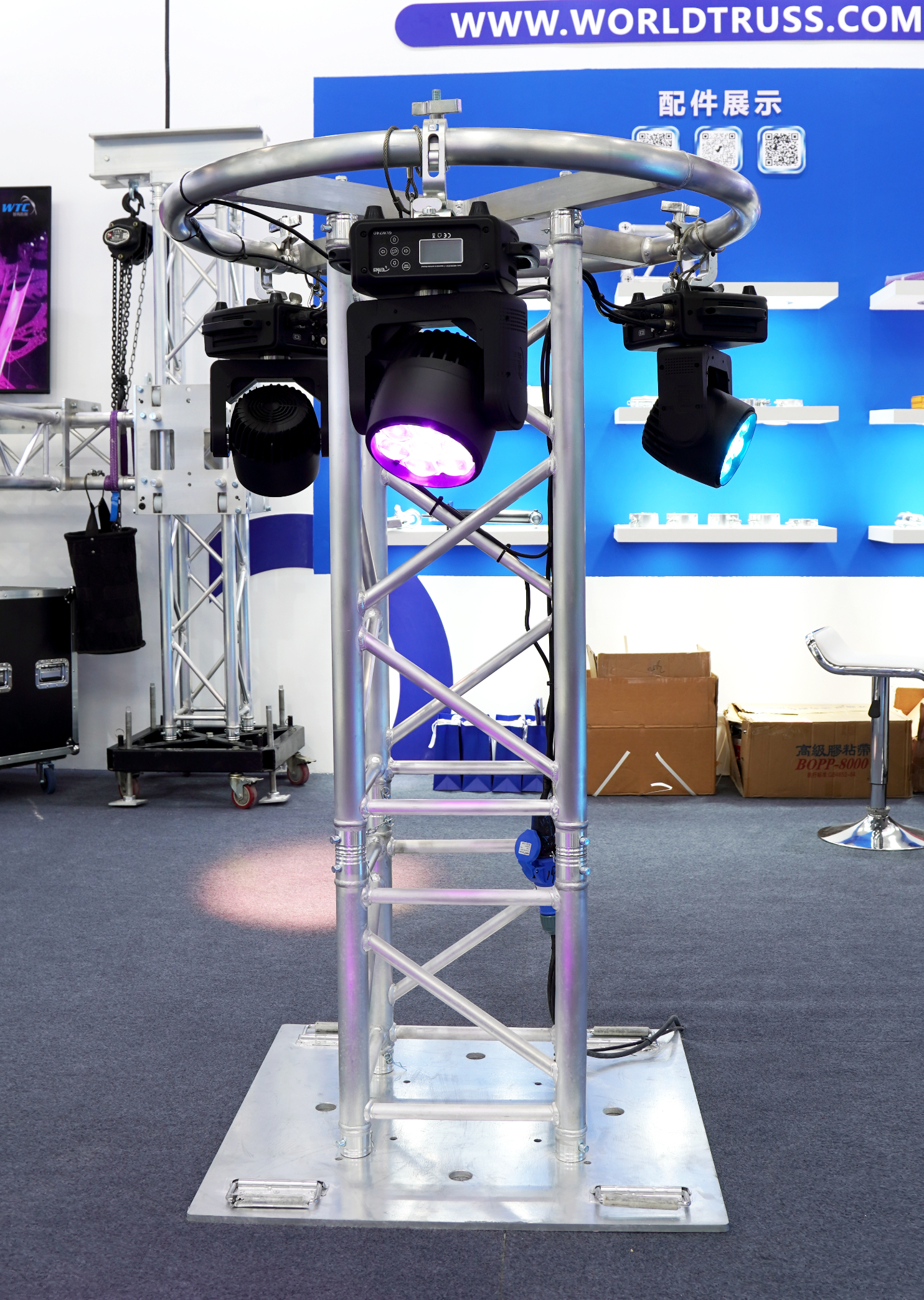 此次展会上,客户对我司的六款明星灯车格外感兴趣,每款灯车都有不同的亮点,如方便拆卸运输、结实稳固、功能多样等。此外,还有折叠舞台、环形灯架、桁架系统等也十分抢眼。
