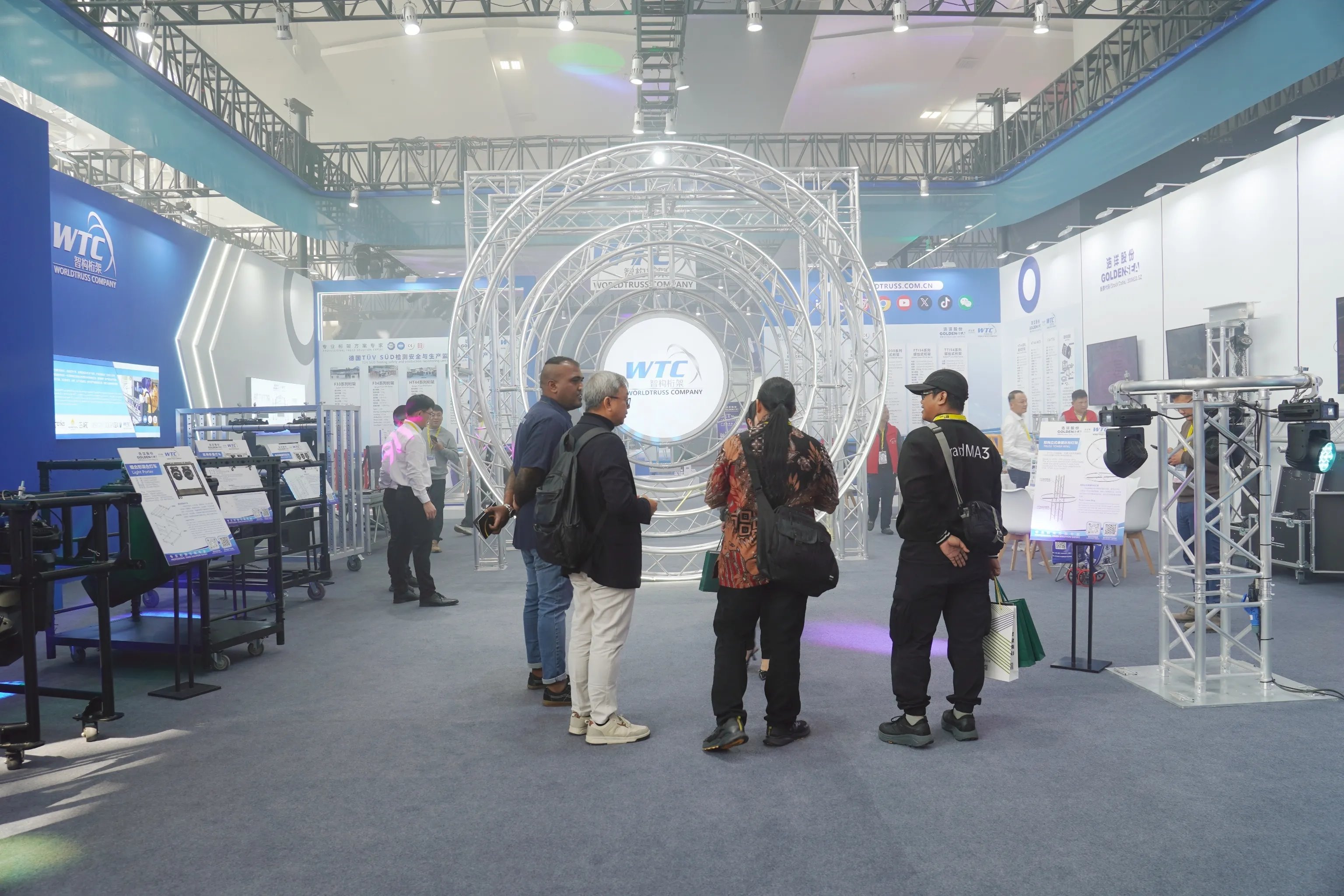 2025 GET show广州(国际)演艺设备、智能声光产品技术展览会于今日在中国进出口商品交易会琶洲展馆B区盛大开幕,广州市智构桁架有限公司携新产品亮相,向客户展示了多款铝合金多功能灯车、桁架系统以及折叠舞台等配套产品。智构桁架在总公司浩洋股份的带领下重磅亮相,浩洋股份董事长蒋伟楷、智构桁架总经理蒋伟洪以及各部门团队倾力出击!展会首日,来到智构桁架参观的客户络绎不绝,我司的新款灯车备受客户青睐,尤其关注多功能调节灯车与灯阵,大家纷纷上手试操作、拍照记录。对于客户提出的疑惑,我司业务员耐心讲解答疑,更有同行朋友前来交流学习。举办首日热潮为本次展会带来好的开端,智构桁架将继续邀您莅临中国进出口商品交易会展馆B区9.3馆B2展位参观,我司团队将竭诚为您提供所需支持,希望能够为您提供更好的产品与服务。