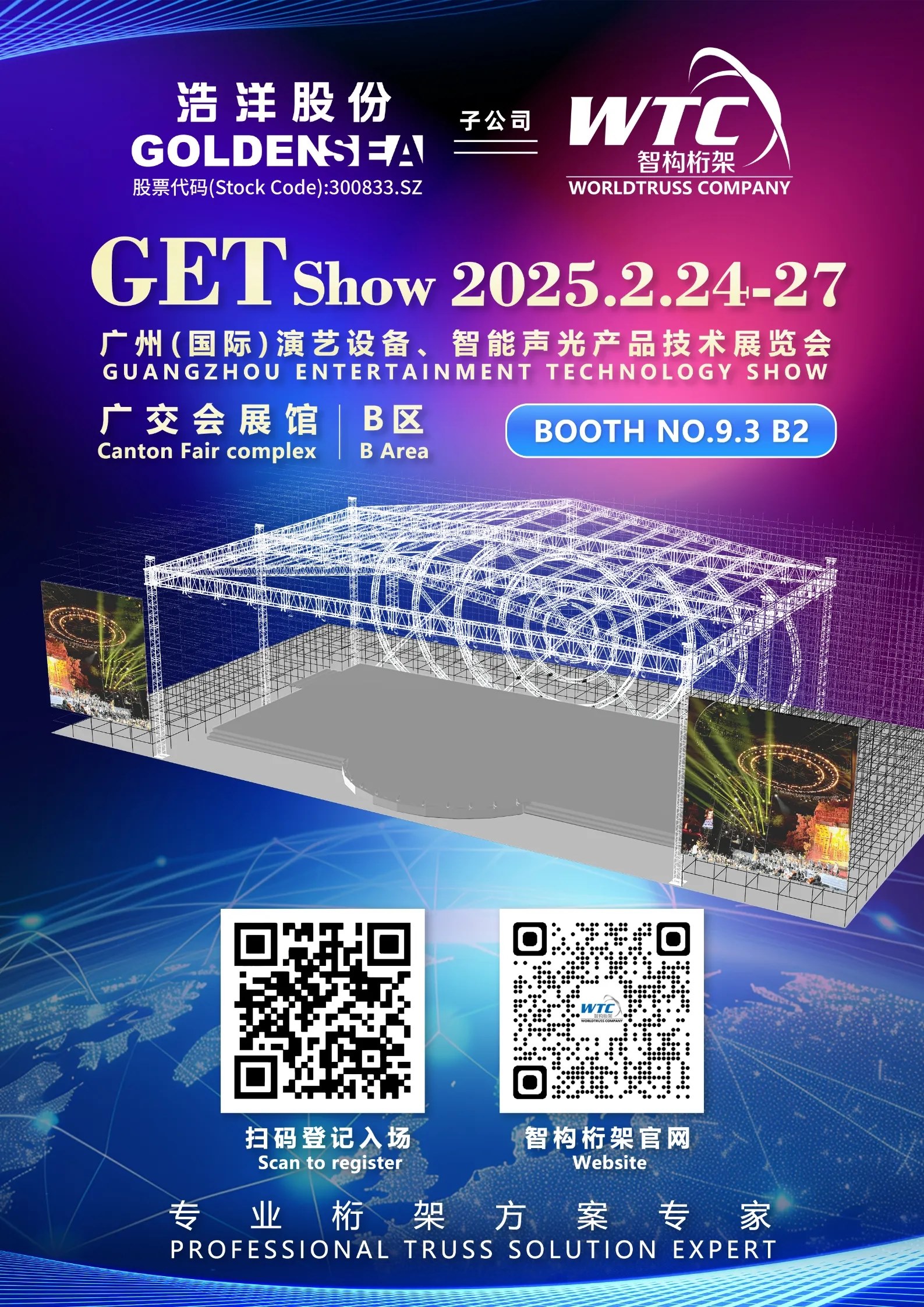 2025年2月24日-27日,广州(国际)演艺设备、智能声光产品技术展览会在中国进出口商品交易会琶洲展馆B区举行,智构桁架在B区9.3馆 B2展位期待您的到来。