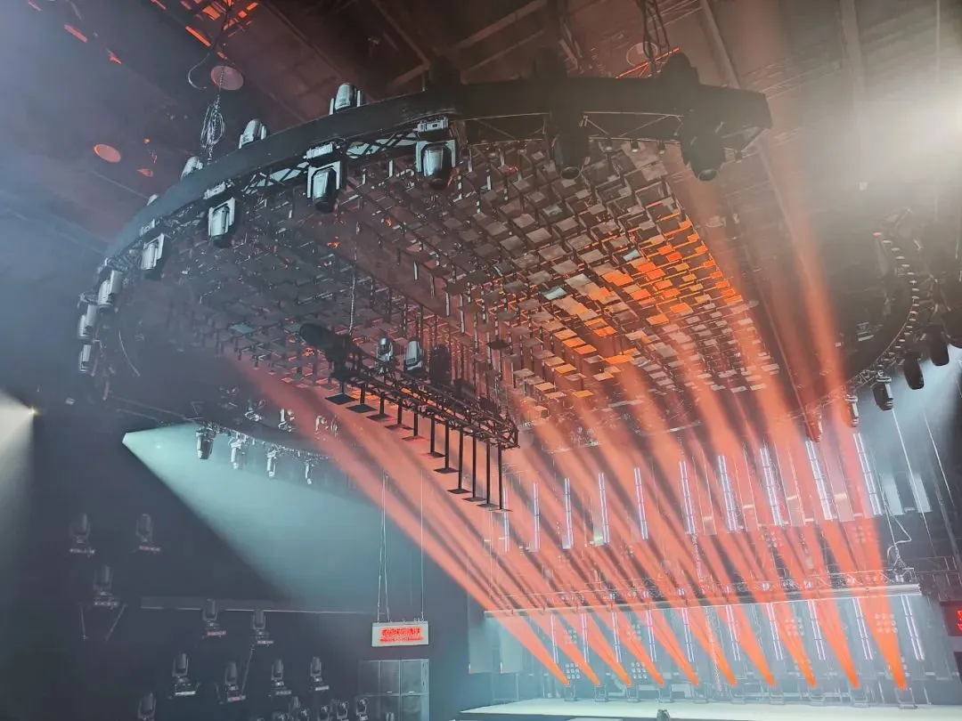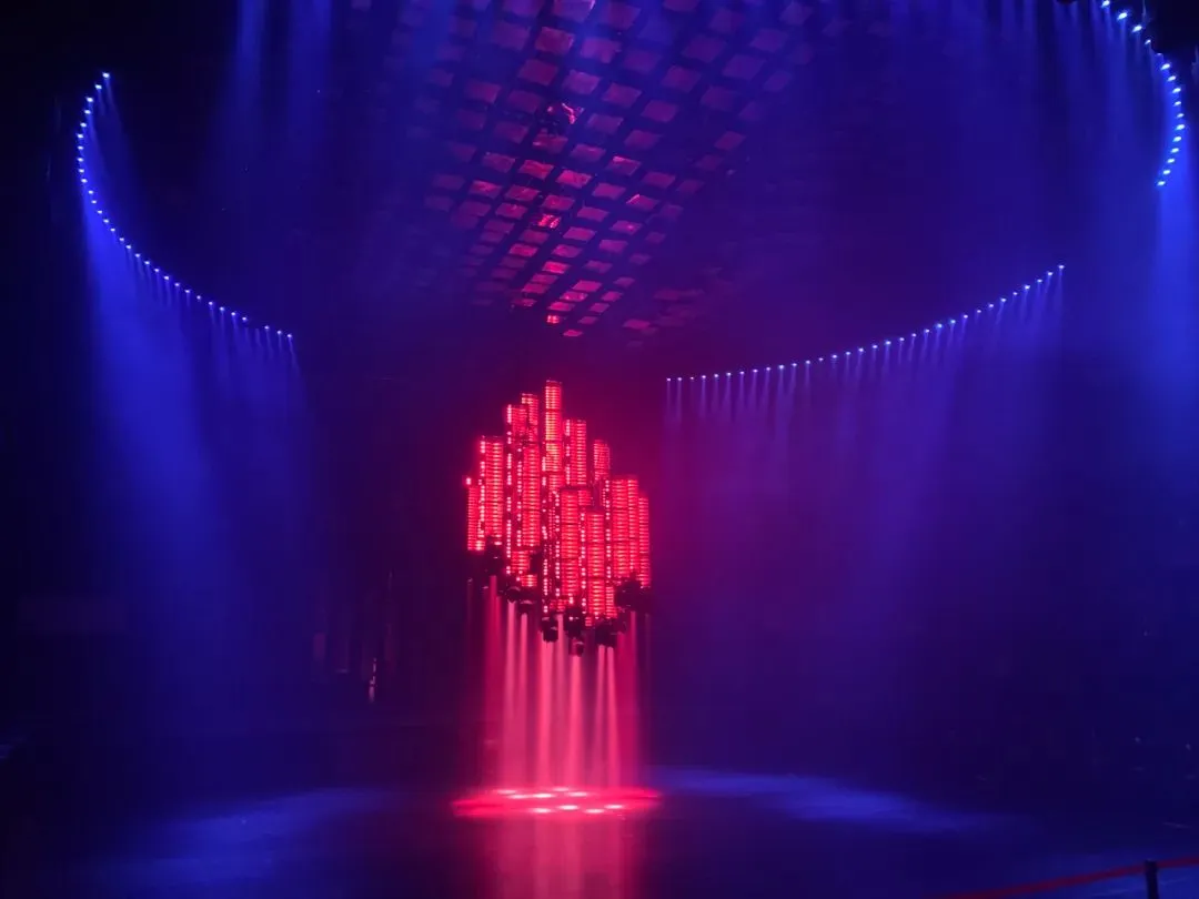 此次灯光秀在浩洋总公司展厅进行展示,以“浩瀚星辰,滴水成洋”为主题,在现场我们可以感受到万灯璀璨,争奇斗艳,如一片浩瀚的海洋。当中最令人印象深刻的是水滴、莫比乌斯环的设计造型,精选我司权威认证的桁架系列产品进行组合搭建,特殊的异型结构搭配色彩斑斓的灯光,犹如精灵般跳跃,每一分每一秒都在绽放舞台光彩。